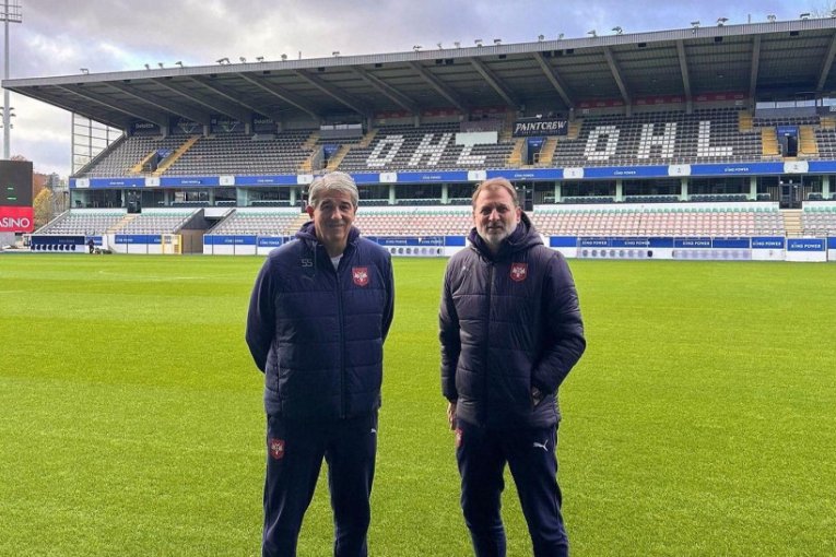 Zbog toga su direktor A reprezentacije Srbije Stevan Dika Stojanović i jedan od pomoćnika selektora Dragana Stojkovića Bratislav Živković obišli tridesetak kilometara udaljeni stadion "Den Darf" u Luvenu, gde će "orlovi" odigrati prijateljski meč sa Belgijom. Stojanović i Živković su se uverili da je teren u dobrom stanju i da postoje svi neophodni uslovi za odigravanje utakmice. Njih dvojica su na prepodnevnom sastanku sa UEFA i FS Belgije predvodili delegaciju FS Srbije.