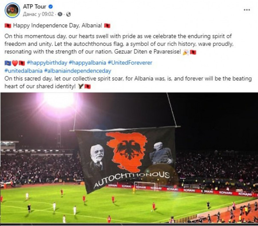 U istom danu Albanci su hakerski napali profile ATP na društvenim mrežama stavljajući sliku zastave "velike Albanije". Ali ne bilo koju, već onu iz Beogradu 2014. kada je dron uneo to parče tkanine na stadion u Humskoj tokom meča između Srbije i Albanije u kvalifikacijama za EP 2016. Taj napad je bio uperen protiv sportske Srbije, pa i Novaka Đokovića, koji je najbolji teniser sveta u sportu pod nadležnošću ATP.