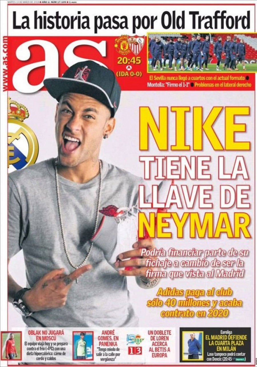 Real ima ugovor sa "Adidasom" do 2020. godine. Čelnici Reala su nedavno odbili da produže ovaj ugovor, a navodno je za sve kriv Nejmar i kompanija "Najk".