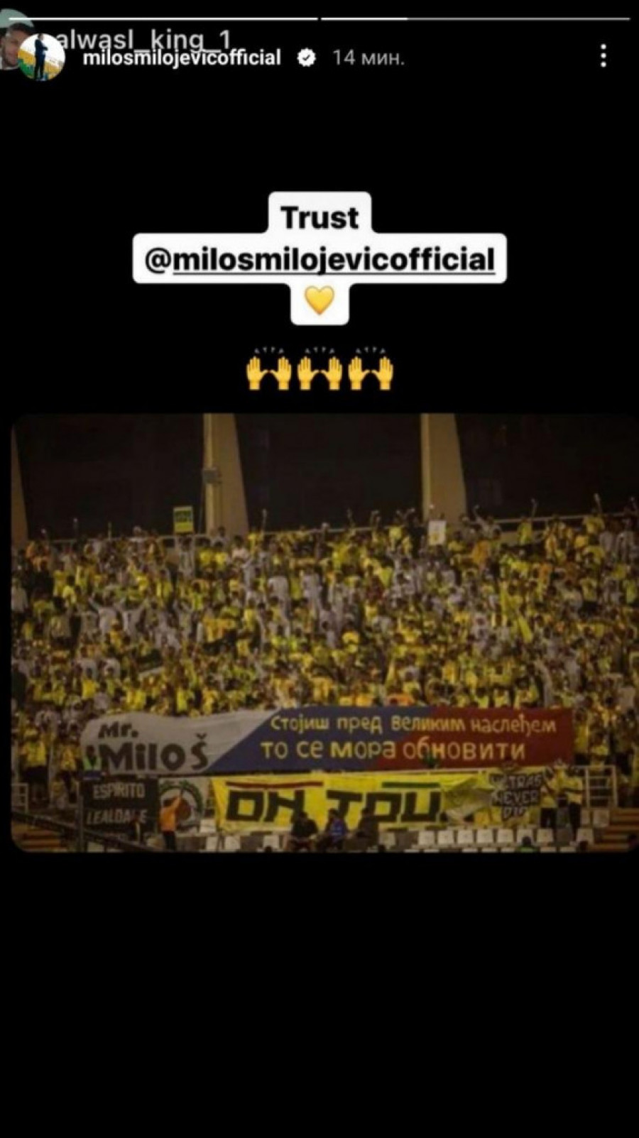 – Mr Miloš, stojiš pred velikim nasleđem to se mora obnoviti – napisali su navijači Al Vasla na transparentu.