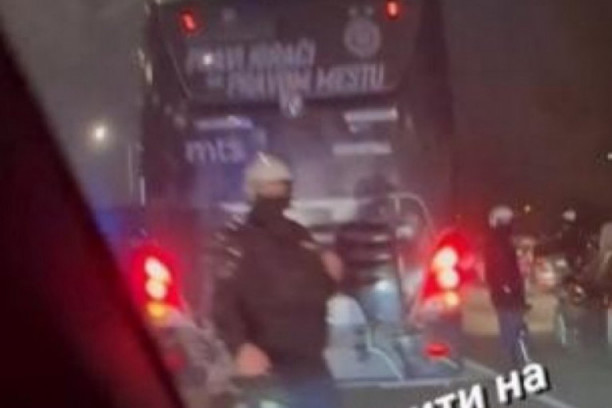 Naime, sat i 15 minuta pred početak meča u Humskoj, autobus sa fudbalerima Partizana primećen je kako "mili" u velikoj saobraćajnoj gužvi, pa je jedan od navijača uslikao vozilo.