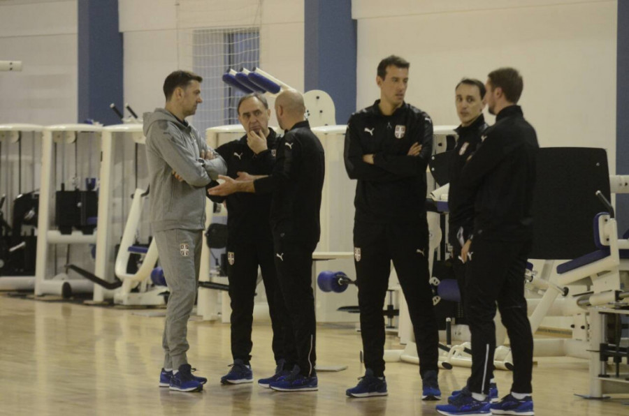 Reprezentativci Srbije okupili su se pred dve prijateljske utakmice protiv Maroka 23. marta u Torinu i Nigerije 27. marta u Londonu, a prvi trening nakon okupljanja "orlovi" su odradili u hali zbog hladnog vremena.