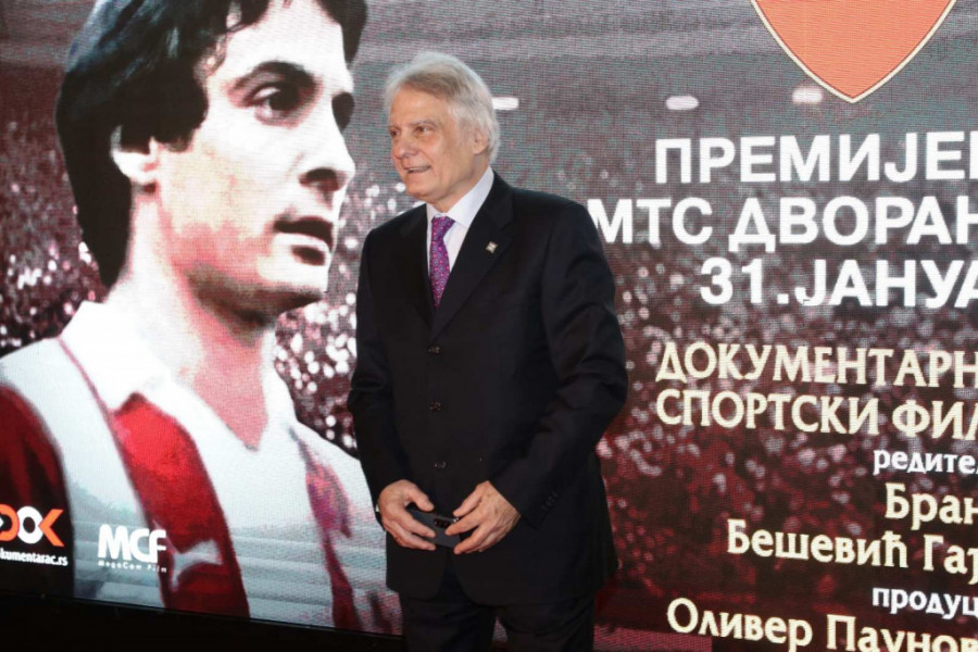 Legendarni fudbaler Crvene zvezde Dušan Savić je uoči premijere filma „Dule Savić, a u Londonu muk“, u MTS dvorani, dao izjavu za medije.