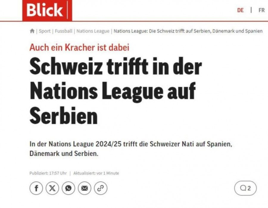 - Eksplozivni duel protiv Srbije. Srbija je treća nacija koja nas čeka. Duel protiv balkanske nacije je već odigran na Svetskom prvenstvu 2018. u Rusiji i na Svetskom prvenstvu 2022. u Kataru. Oba puta su im naplaćene utakmice. U Rusiji su Džaka i kompanija slavili sa "dvoglavim orlom", a u Kataru je duel bio svojevrsno „finale“ za plasman u osminu finala - podsećaju Švajcarci.
