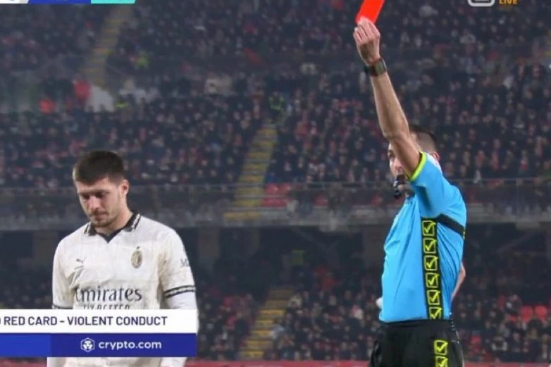 Glavni sudija meča Andrea Kolombo je prvo pokazao žuti karton Luki, ali je ubrzo dobio poziv iz VAR sobe da pogleda snimak. Kada je video šta je Srbin uradio, arbitar je poništio svoju prvobitnu odluku i pokazao je Joviću direktan crveni karton.