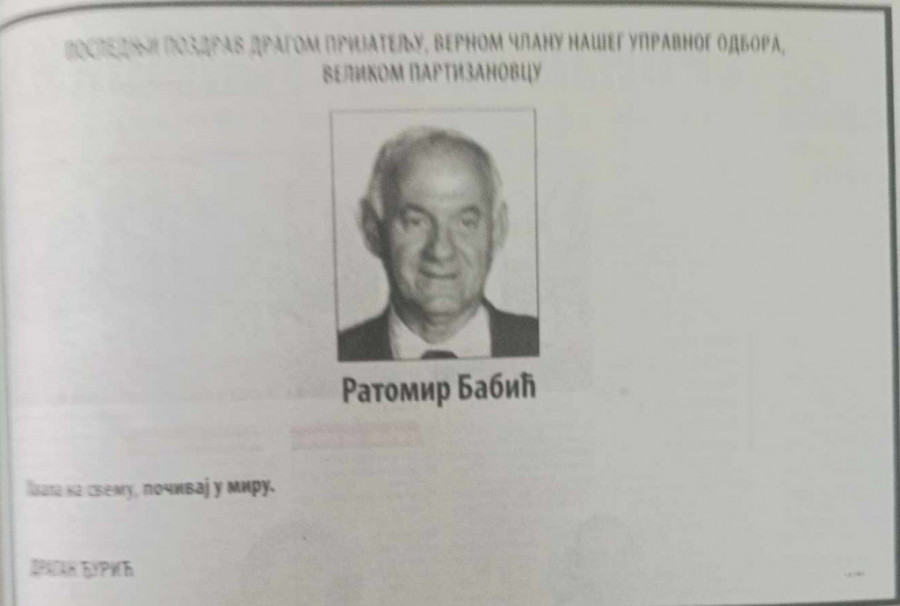 Zbog toga su se brojni prijatelji i rodbina oprostili porukama od Ratomira Babića, a među onima koji su uglednom fudbalskom pregaocu preko čitulja poslali poslednji pozdrav jeste i Dragan Đurić.