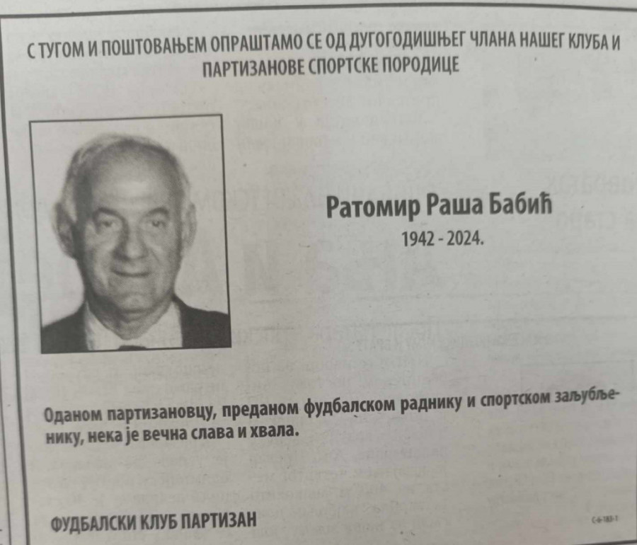PARTIZAN SE OPROSTIO OD RAŠE BABIĆA! Nećete VEROVATI ko je još dao ČITULJU bivšem funkcioneru crno-belih!