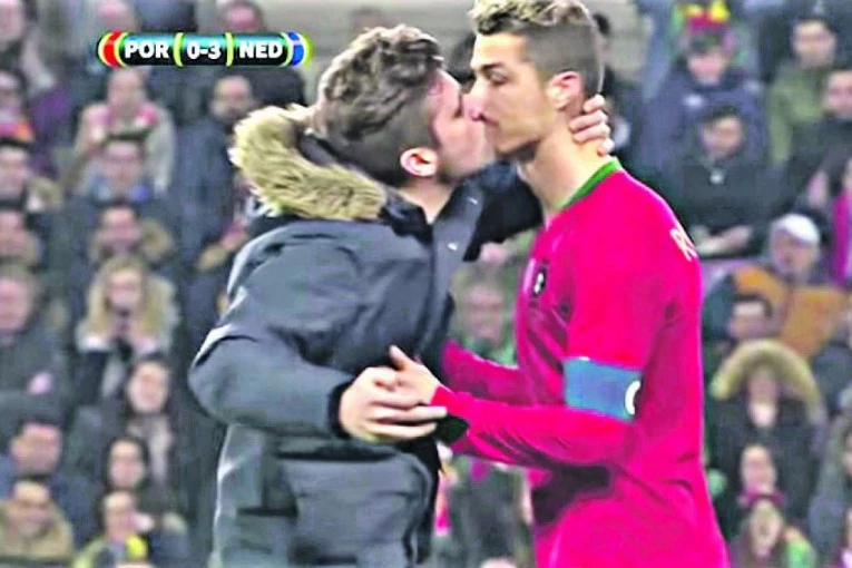 Kristijana Ronalda često nazivaju miljenikom žena, ali ni muškarcima nije manje draži! Na prijateljskoj utakmici između Portugala i Holandije (0:3) u Ženevi jedan navijač uleteo je na teren i poljubio zvezdu Real Madrida u usta!