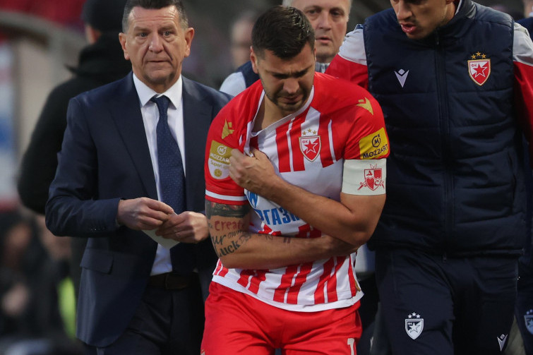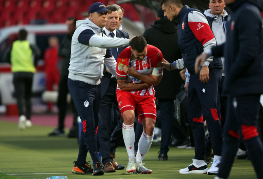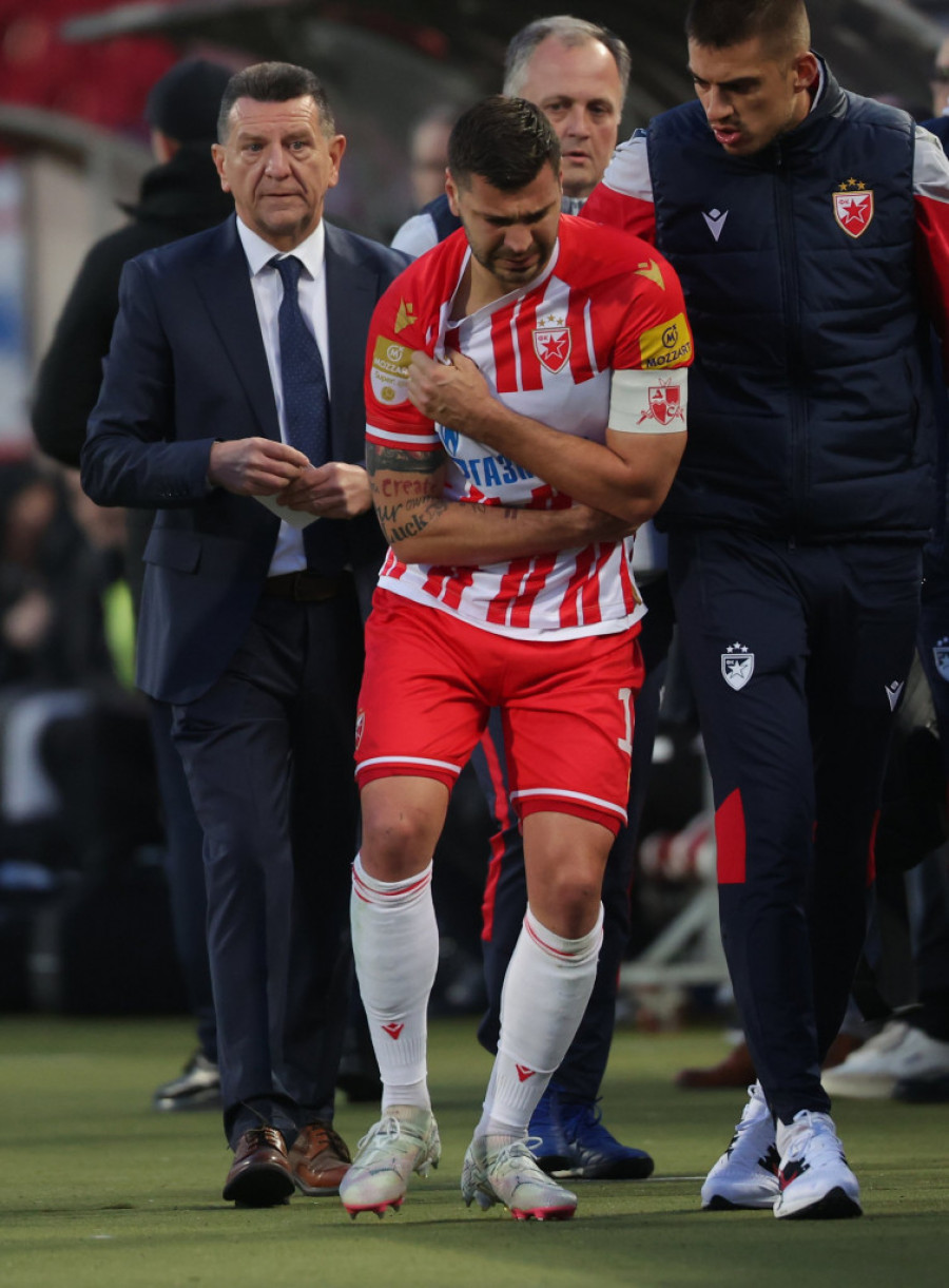 30. minut - Ne može Dragović da nastavi meč, na teren će Naser Điga, a Uroš Spajić preuzima kapitensku traku. Veliki peh za Vladana Milojevića i Zvezdu.
