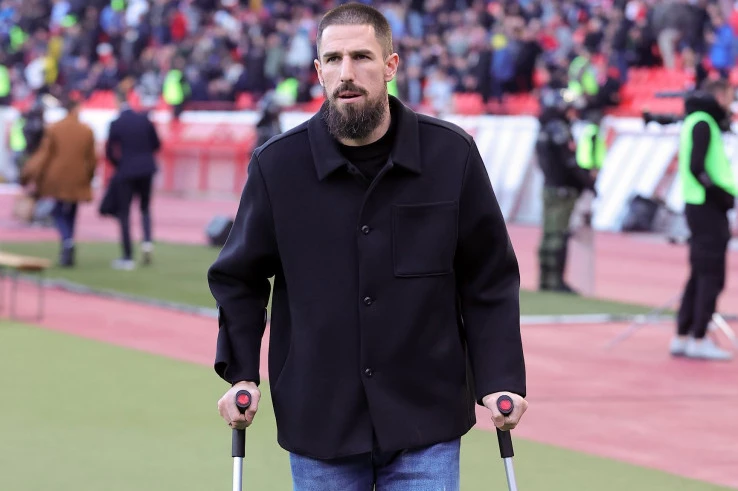 Fudbaler Crvene zvezde Miloš Degenek na 172. večti derbi došao je na štakama!