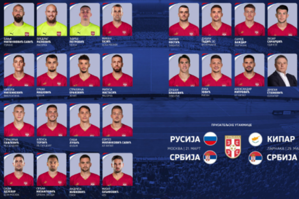 Selektor fudbalske reprezentacije Srbije, Dragan Stojković Piksi, saopštio je konačan spisak igrača za prijateljske mečeve protiv Rusije, u Moskvi 21. marta i Kipra, četiri dana kasnije u Larnaki.
