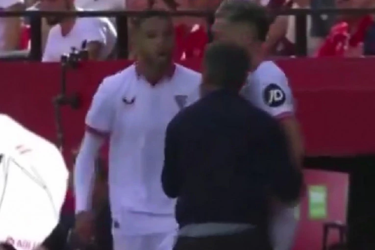 Lukas Okampos je morao da zaustavi zaraćene strane, ubrzo su se uključili i ostali sa klupe Sevilje i prava je sreća što nije došlo do fizičkog obračuna.
