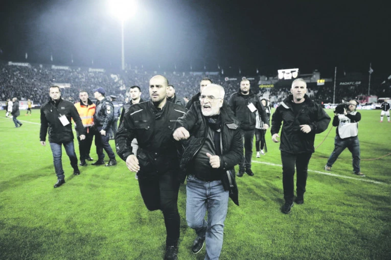 Foto: www.profimedia.rsSavidis je, revoltiran odlukom da se PAOK poništi gol, sa pištoljem iza pojasa i obezbeđenjem upao na teren da se obračuna sa sudijom Jorgosom Kominisom, pa sada neće moći da prisustvuje svim utakmicama u periodu od tri godine.