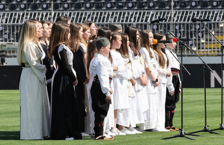 Vokalni sastav sa Kosova i Metohije uoči meča izveo je srpsku himnu "Bože pravde".