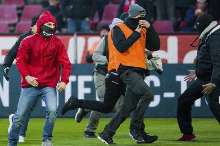 Foto: Tanjug/APOvo je bila dugo planirana akcija, kako bi se vratilo milo za drago Kelnovim huliganima koji su na prethodnoj utakmici dva tima ukrali jednu od većih zastava sa ograde.