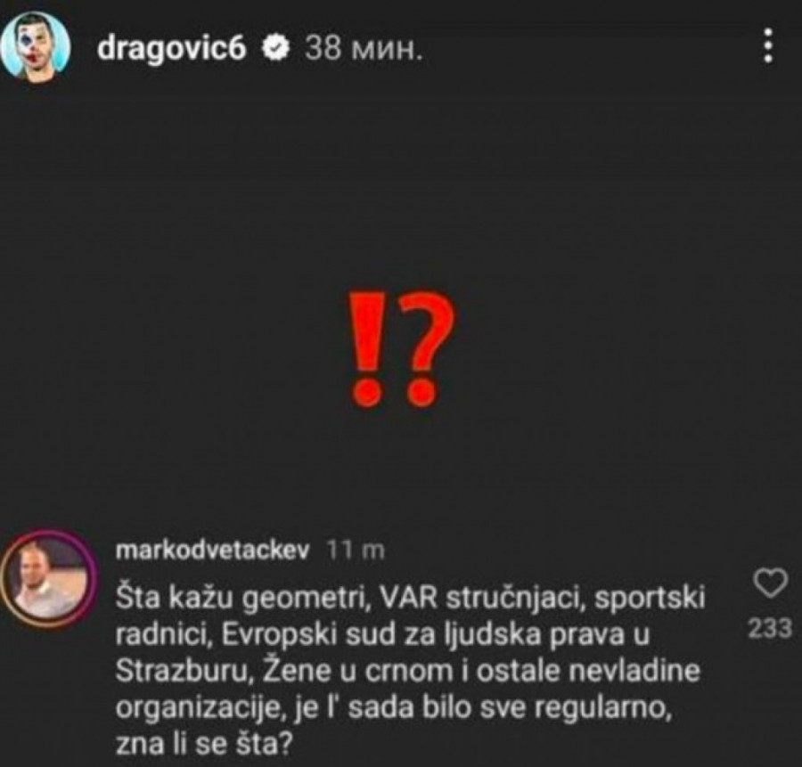 Navedenu objavu Dragović je ubrzo uklonio sa svog profila, ali s obzirom na veliku pažnju koju je ova objava privukla, možemo očekivati da će ova tema i dalje biti predmet interesovanja javnosti.