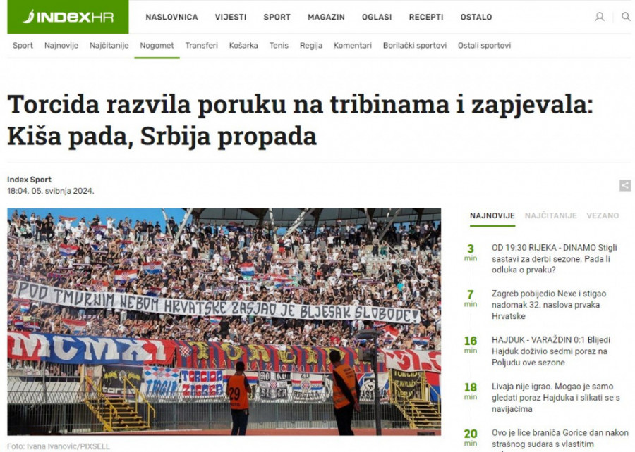 Hrvatski mediji najnormalnije prihvatili stihove "Kiša pada, Srbija propada. Vjetar piri, Hrvatska se širi" i "Mi Hrvati ne pijemo vina, samo krvi četnika iz Knina". Bruka i sramota!