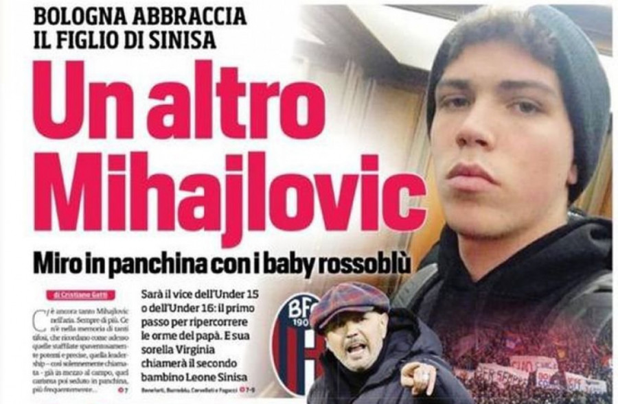 Miroslav Mihajlović, sin legendarnog srpskog fudbalera i trenera Siniše Mihajlovića, pridružuje se klubu Bolonja u ulozi trenera, piše ugledni list "Korijere delo sport".