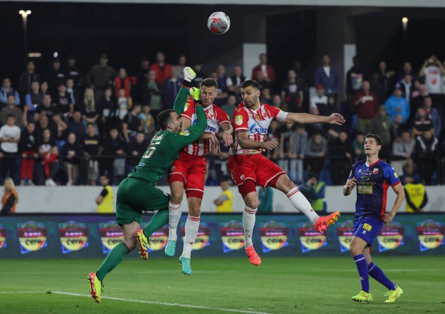 64. minut - Slobodan udara za Zvezdu koji je izveo Hvang, ali je Carević sprečio gol, tako što je boksovao loptu.