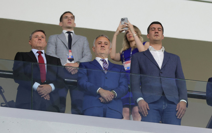 Selektor Stojković utakmicu prati u društvu ministra sporta i omladine Srbije Zorana Gajića i bivšeg košarkaša Zvezde i državnog sekretara ministarstva sporta Marka Kešelja