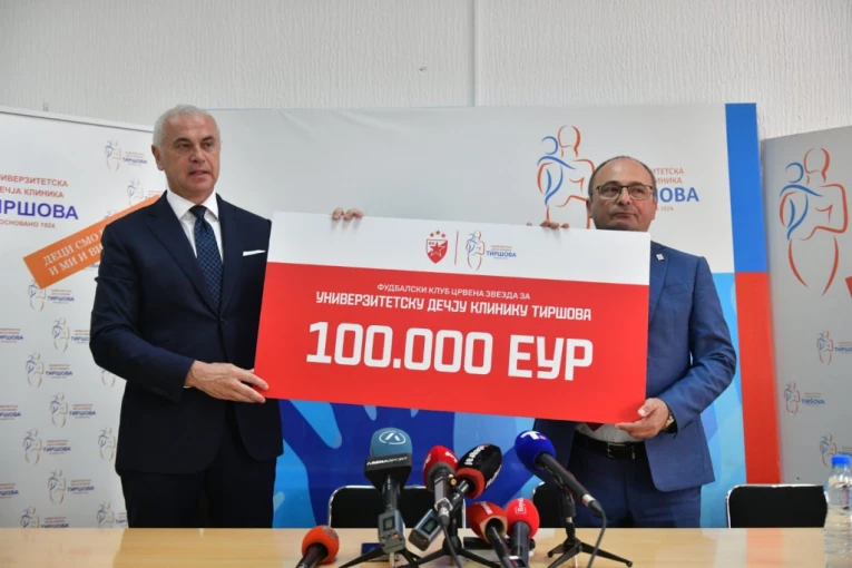 - Velika mi je čast što imam priliku da u ime Fudbalskog kluba Crvena zvezda uručim ček u iznosu od 100 hiljada evra dečjoj klinici u Tiršovoj. Ponosan sam što smo danas ovde, ovim humanim povodom. Tokom prethodne decenije smo se trudili da svake godine, finansijski ali i na drugi način pokažemo da smo uz našu decu koja se suočavaju sa različitim životnim bitkama. Lepo je videti nasmejana lica dece, naravno da među njima ima i mnogo zvezdaša, a naša misija će uvek biti da ih usrećimo i pomognemo da njihova medicinska nega bude jos bolja. Hvala vam što ste nam omogućili da ovom donacijom pomognemo deci Srbije i možemo da obećamo da će Crvena zvezda svojim humanitarnim akcijama nastaviti da pomaže na različite načine gde god to bude bilo potrebno - rekao je Zvezdan Terzić.