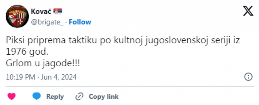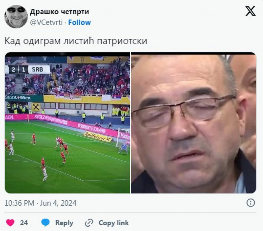Uz veliki broj komentara na društvenim mrežema u kojima se kritikuje izdanje reprezentacije Srbije, bilo je i onih koji su izazvali smeh. Jedan od korisnika društvene mreže "X", nekadašnji Tviter, jednom rečenicom je opisao sve ono što "orlovi" prikazuju u prethodnom periodu: