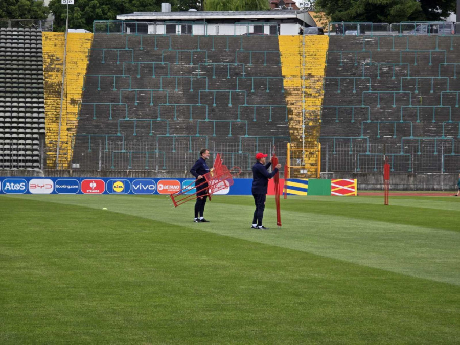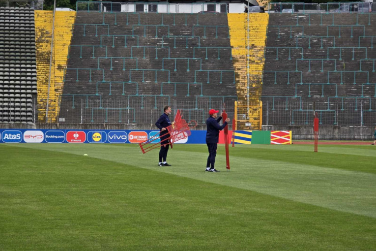 Mnogi navijači zauzeli su svoje mesto na tribinama kada je ušao selektor Srbije Dragan Stojković Piksi i dobio ovacije svih prisutnih. On je odmah po ulasku na teren rasporedio sve potrebne čunjeve za trening igrača, a potom je izvadio i papir.