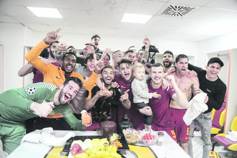 Pesma i polivanje pivom obeležili feštu igrača Rome posle deklasiranja španskog giganta