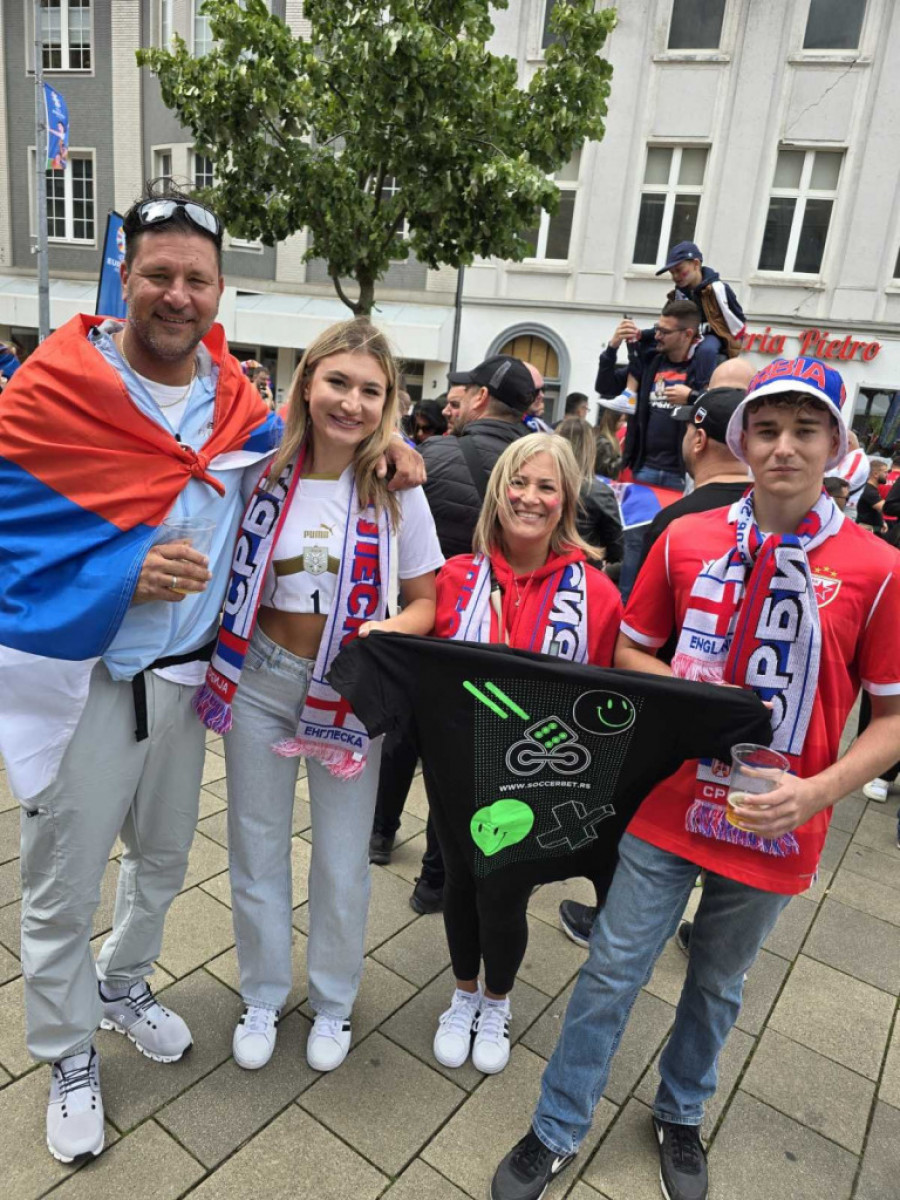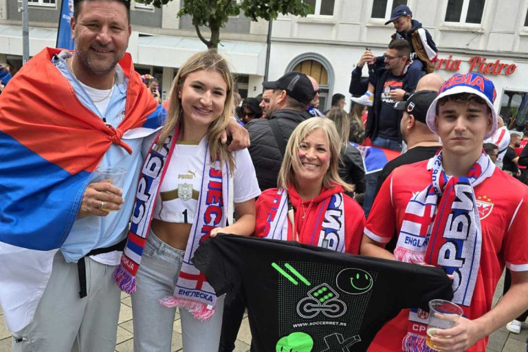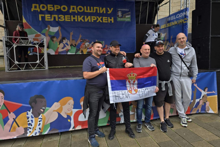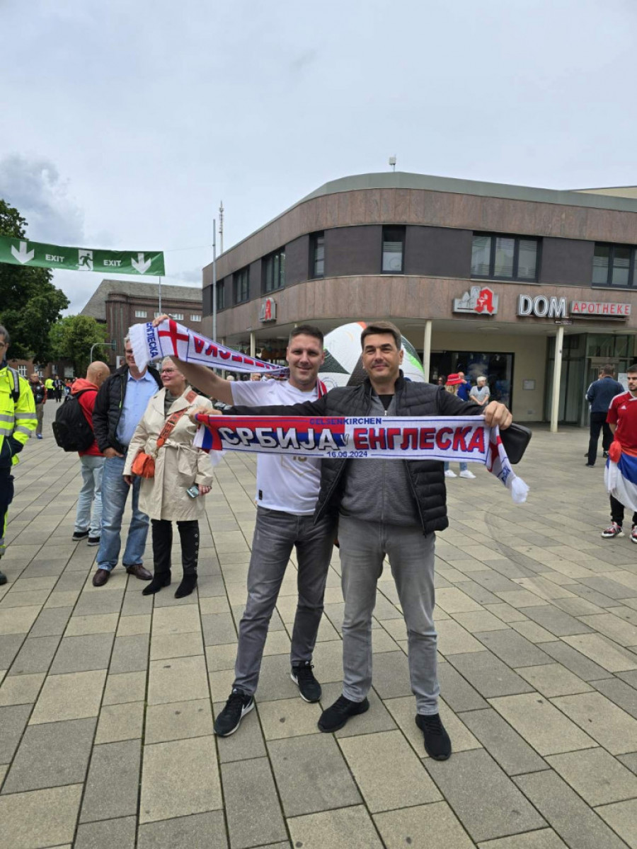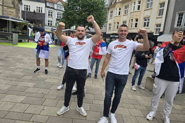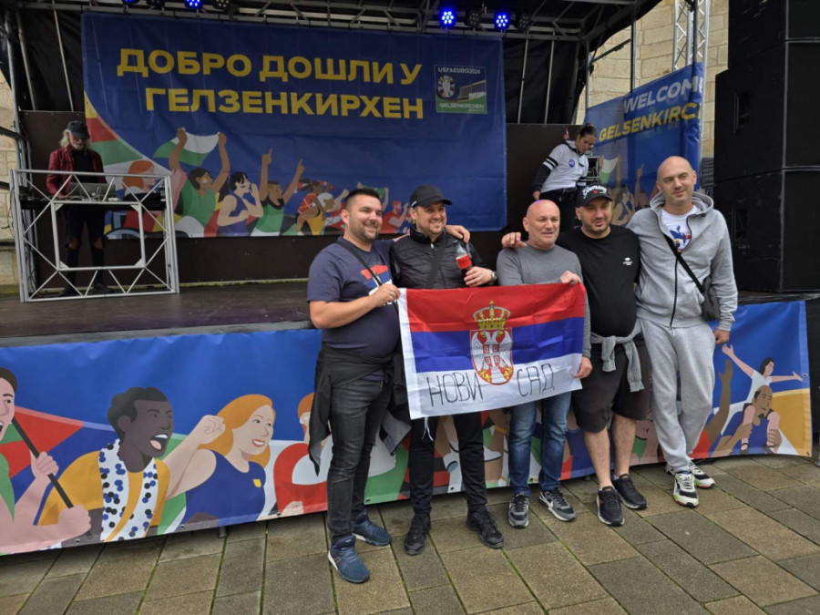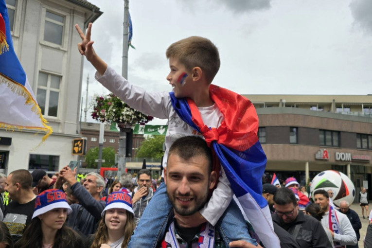 Nemački organizatori potrudili su se da se Srbi osećaju kao kod kuće pa su im spremili toplu dobrodošlicu, sa sve muzikom koja bi mogla da podigne atmosferu do usijanja. I nisu pogrešili. Ceo trg zagrmeo je kada je sa razglasa puštena pesma "Veseli se srpski rode", a zatim i "Vidovdan". Međutim, naši navijači, pogotovo oni iz Republike Srske, koji su i te kako brojni, upali su u ekstasu kada je sa razglasa pušten Baja Mali Kninža i pesma "Pevaj Srbijo".