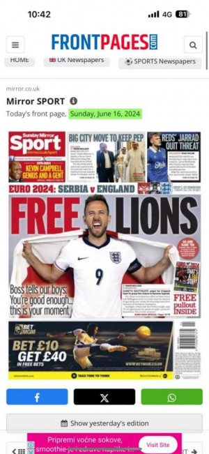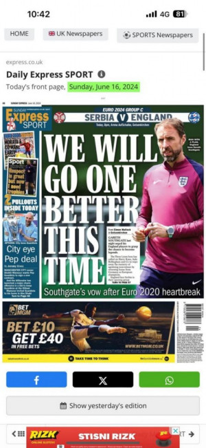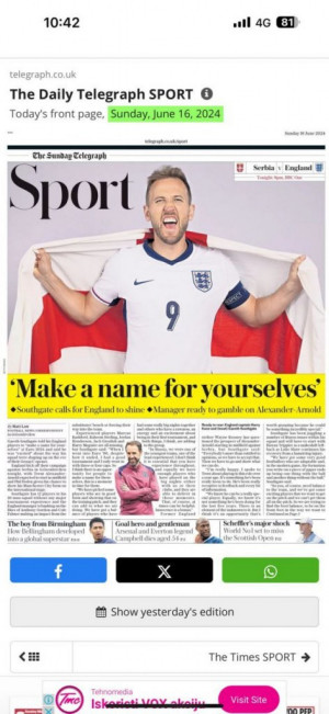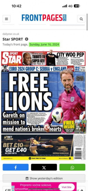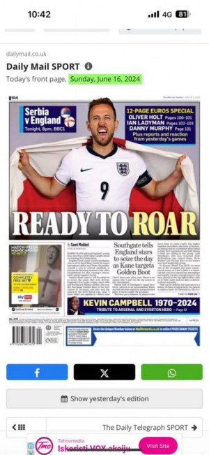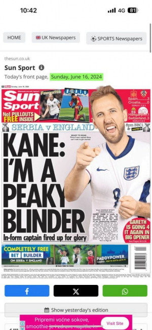 Kako možemo da primetimo, na njihovim tabloidima su samo pozitivne misli pred samu utakmicu "Oslobodi lavove!", "Šefe, reci svojim momcima: Dovoljno ste dobri...ovo je vaš momenat", ali se isto tako da nekima od njih prožima suptilna prozivka. Tekst na engleskom glasi "Southgate tells England stars to seize the day as Kane targets Golden boot" na kontu čega bi svima palo na pamet da je prevod jako nevin i da glasi "Južna kapija govori engleskim zvezdama da zgrabe dan dok Kejn cilja Zlatnu kopačku", međutim "Golden boot" može imati potpuno drugačije značenje.