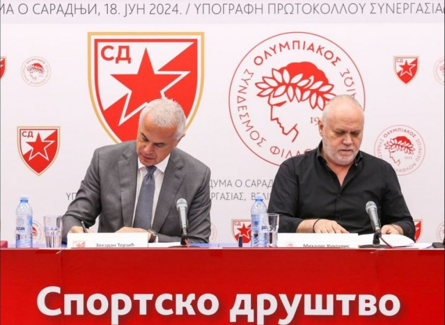 U medija centru stadiona "Rajko Mitić", potpisan je memorandum o saradnji između bratskih klubova Crvene zvezde i Olimpijakosa.