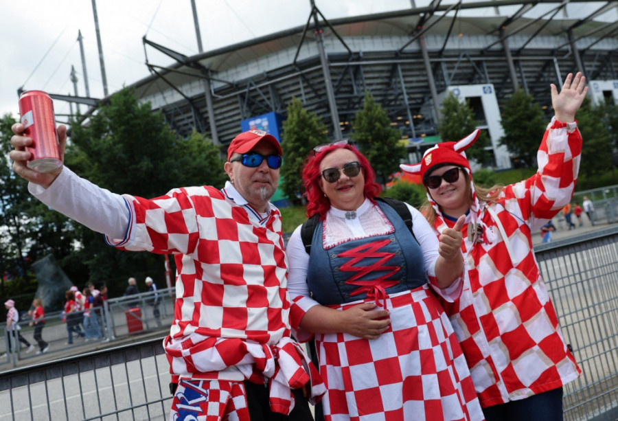 Hrvatski i albanski navijači ulaze na stadion u Hamburgu, stvarajući uzbuđenje i napetost pred početak utakmice. Atmosfera je nabijena emocijama dok se očekuje početak meča. Do početka utakmice ostalo je još malo vremena, a ljubitelji fudbala širom sveta sa nestrpljenjem očekuju da vide kako će se ovaj istorijski susret odvijati na terenu.