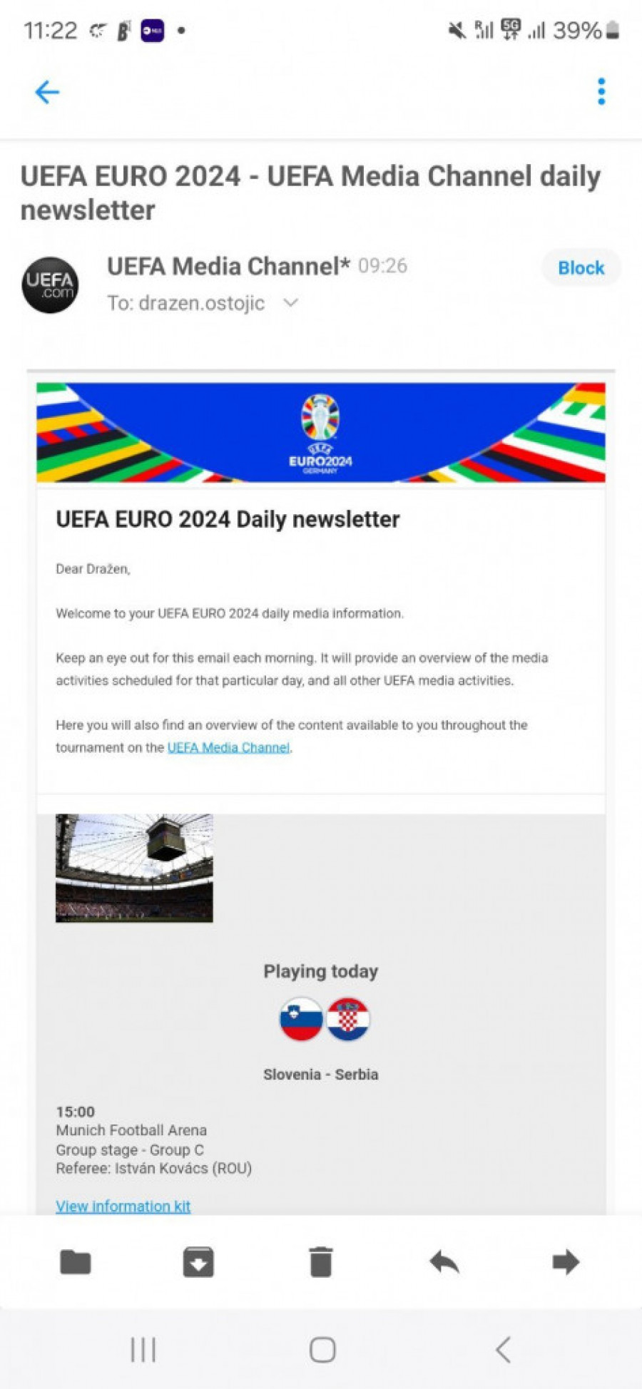 Sve smo bliži velikom i najvažnijem duelu Srbije na Evropskom prvenstvu protiv Slovenije, a evropska fudbalska krovna organizacija UEFA napravila je veliki propust uoči meča, kada su u zvaničnom dopisu umesto srpske zastave postavili zastavu Hrvatske. Ova greška izazvala je oštru reakciju javnosti, ali je UEFA brzo reagovala i ispravila svoj propust pre nego što je meč počeo.