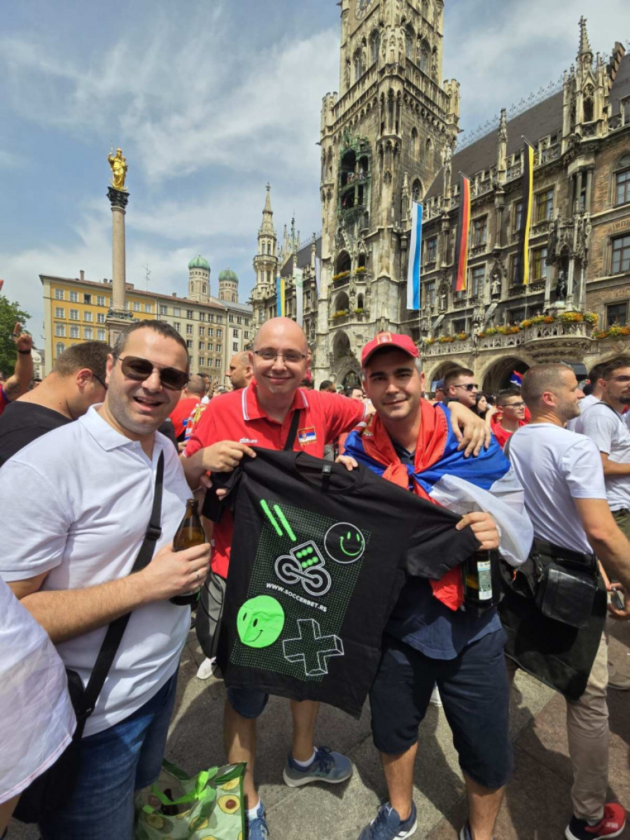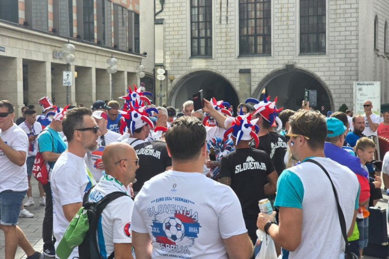 Na ovaj način su i jedni i drugi potvrdili da očekuju fer i sportsu utakmicu, kakvo je i celodnevno navijanje na Marianplacu. Jedni kraj drugih su i Srbi i Slovenci, pevaju, peckaju se, ali sukoba nema.