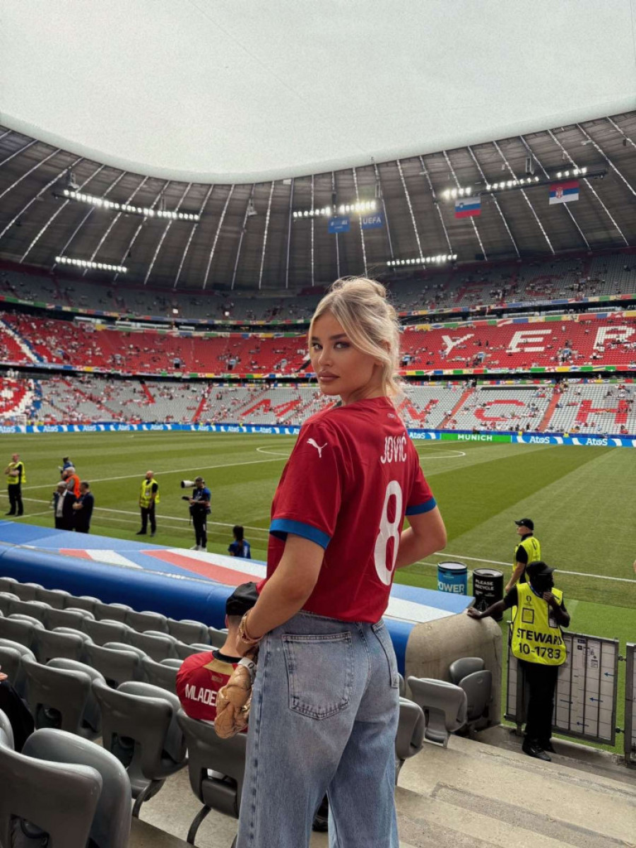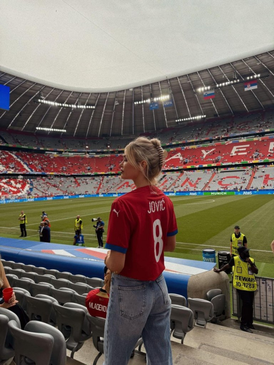 - Najsrećnija sam i najponosnija na svetu, on najviše voli da igra za svoju zemlju - rekla je Sofija Milošević za "Republiku", posle meča protiv Slovenaca, koja je bila na tribinama stadiona u Minhenu i gromoglasno bodrila supruga.