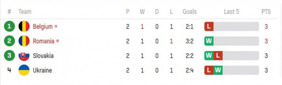 Naime, sada pred poslednje treće kolo sve tri selekcije imaju po tri boda, uz gol razliku: Rumunija (3:2), Belgija (2:1), Slovačka (2:2), Ukrajina (2:4).