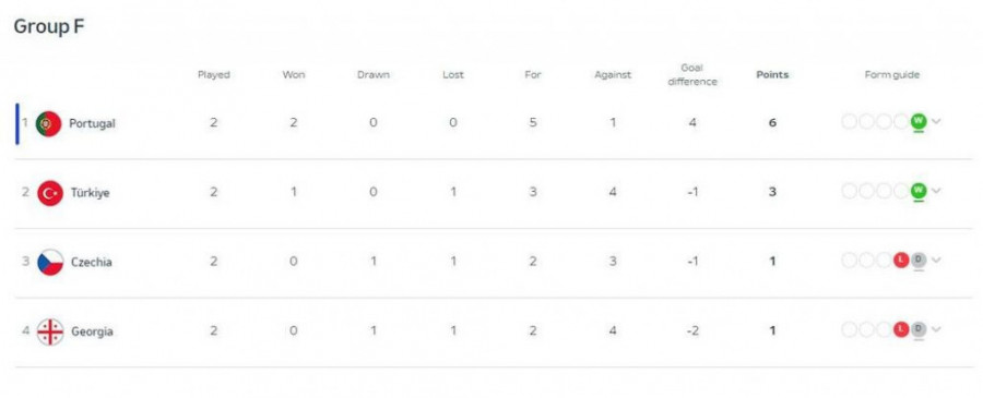 Portugal sa šest bodova ide sa prvog mesta u nokaut fazu Evropskog prvenstva, a Turska koja je na drugoj poziciji moraće da se pomuči u trećem kolu protiv Češke kako bi zadržala mesto koje vodi u osminu finala. Mečevi ove grupe na programu su u sredu od 21.00 sat.