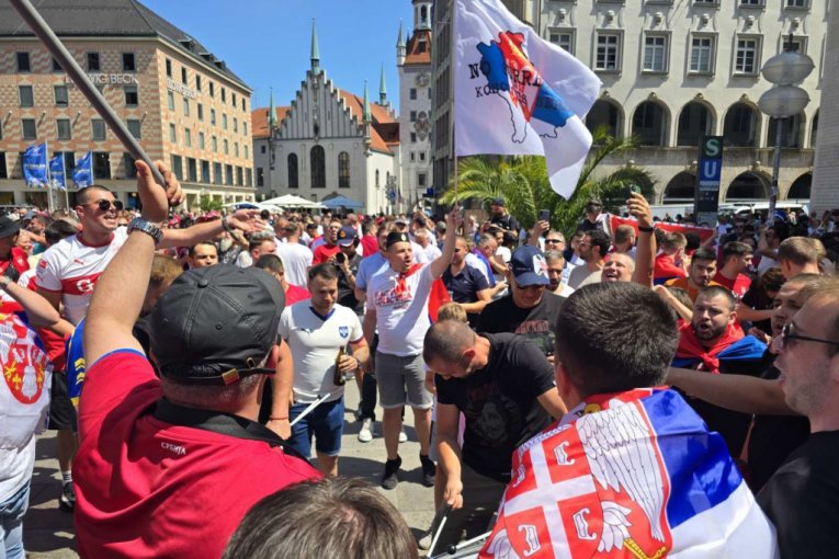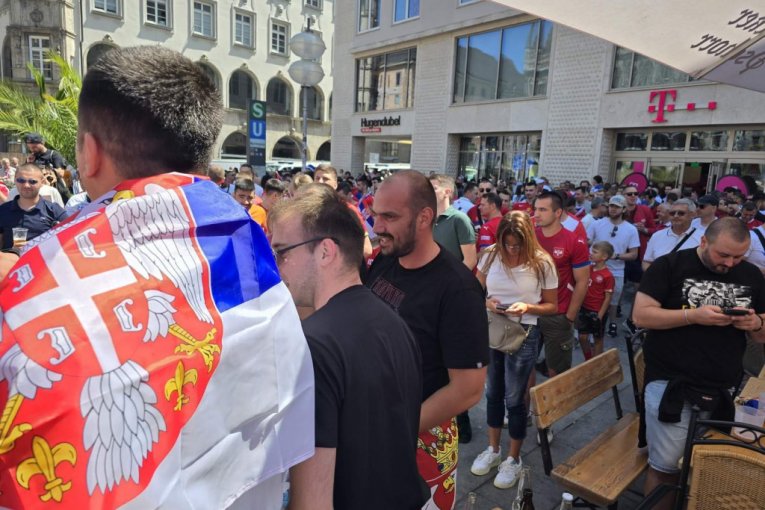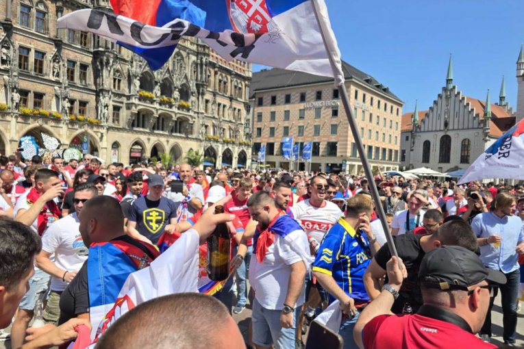 Navijači Srbije ponovo su okupirali Marienplac u srcu Minhena. Od ranih jutarnjih časova su naši ljudi krenuli iz svih delova Nemačke i Evrope prema gradu u kojem će fudbaleri Srbije odmeriti snage sa Danskom na EVRO 2024 od 21 čas na Alijanc areni. Oni koji su prvi stigli na Marienplac su odmah "postavili busije", pa su zastave raširene po kafićima.