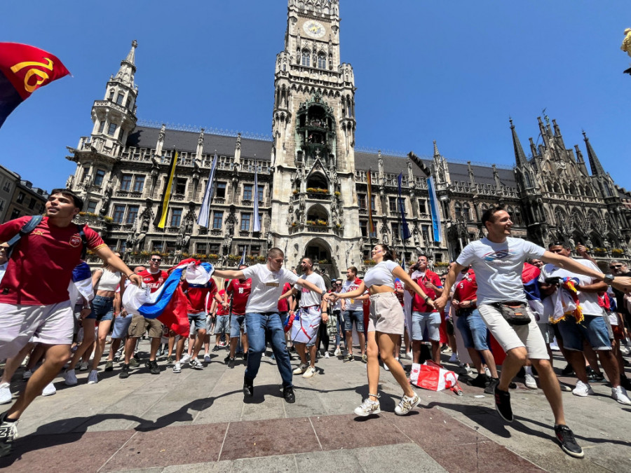 Srbi su okupirali minhenski Marijenplac i bilo je uživanje gledati slike radosti i optimizma uoči predstojećeg presudnog meča za plasman u drugu fazu takmičenja.