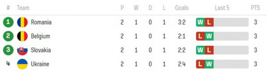 Rumunija i Belgija u ovom momentu imaju najbolji gol količnik +1, tako da se mogu smatrati blagim favoritima u duelima sa Slovačkom i Ukrajinom, a posebno se mora istaći da vrlo lako mogu svi timovi da se nađu u situaciji da grupnu fazu okončaju sa četiri osvojena boda, što bi u ovom momentu Ukrajince odvelo kući zbog lošeg gol koeficijenta.