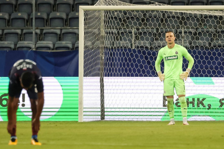 34. minut - Nova opasna situacija. Jarmolenko je prošao dodao do Kabajeva, ovaj šutira sa ivice šesnaesterca,ali srećom pravo u Jovanovića koji boksuje loptu.