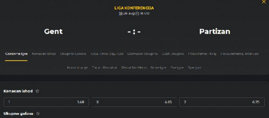 Fudbaleri Partizana suočavaju se sa izuzetno važnim izazovom u sredu od 18 časova, kada će gostovati ekipi Genta. Nakon poraza na domaćem terenu (0:1), crno-beli su svesni da je pobeda neophodna kako bi obezbedili plasman u grupnu fazu Lige konferencija. Međutim, kladionice nisu naklonjene Partizanu, postavljajući visoke kvote za njihov trijumf.