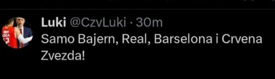 - Samo Bajern, Real, Barselona i Crvena zvezda - napisao je Luka Mitrović na svom nalogu.