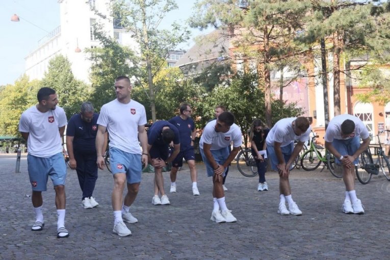 I uvek po pravilu naši reprezentativci privuku veliku pažnju lokalnog stanovništva, a danas i silnih turista koji su okupirali dansku prestonicu. I dok su se Milenković i drugovi razgibavali, pridružili su im se i Japanci, Kinezi…i oni su sledili „uputstva“ Kacušita Kinošija, trenera u stručnom štabu Orlova zaduženog za kondicioni deo, zagrevanje.