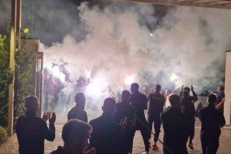 - Sutra kada izađete na teren, nemate čega da se plašite, odigrajte dobar meč, bili ste verovatno i protivnik protiv Benfike, nije se dalo. Sutra igrajte isto tako. Nemate čega da se plašite, jak je protivnik, neka vam budu u glavi ljudi koji su prošli 2.500 kilometara samo da bi vas ovde podržali. Još jedna stvar da vam bude u glavi, da se nije cela Italija uplašila Crvene zvezde i njenih navijača, sutra bi bilo 5.000 - 6.000 ljudi na stadionu sigurno, to vam garantujem! Ali pošto se cela Italija uplašila Crvene zvezde, koja je ogroman klub, i njenih navijača, pokažite im da su se s razlogom uplašili. I nemojte ničega da se plašite, znate da igrate fudbal, mi smo uz vas. To je koliko mi sada možemo - rekao je jedan od vođa Delija, nakoon čega su svi zagrmeli uz skandiranje "Zvezda, Zvezda"