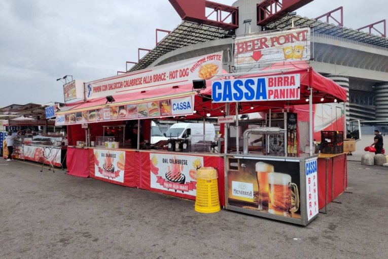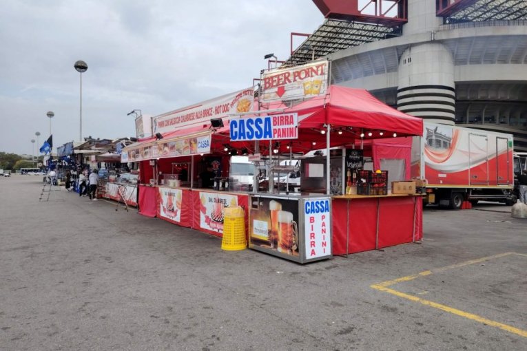 Miris brze hrane širi se oko stadiona, a pored šalova i dresova Intera, nije se našlo ništa neuobičajeno za sada, osim cena. Tačnije visokih cena hrane i suvenira.