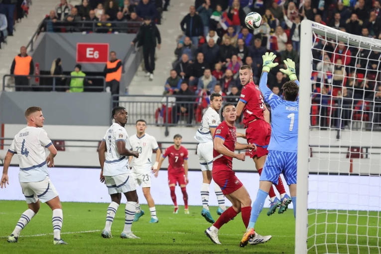 80. minut - Uh, kako je ovo bilo blizu! Sreća za Srbiju! Niko Elvedi je nadvisio sve na petercu i glavom poslao loptu tik pored leve stative. Centimetri su ga delili od gola.
