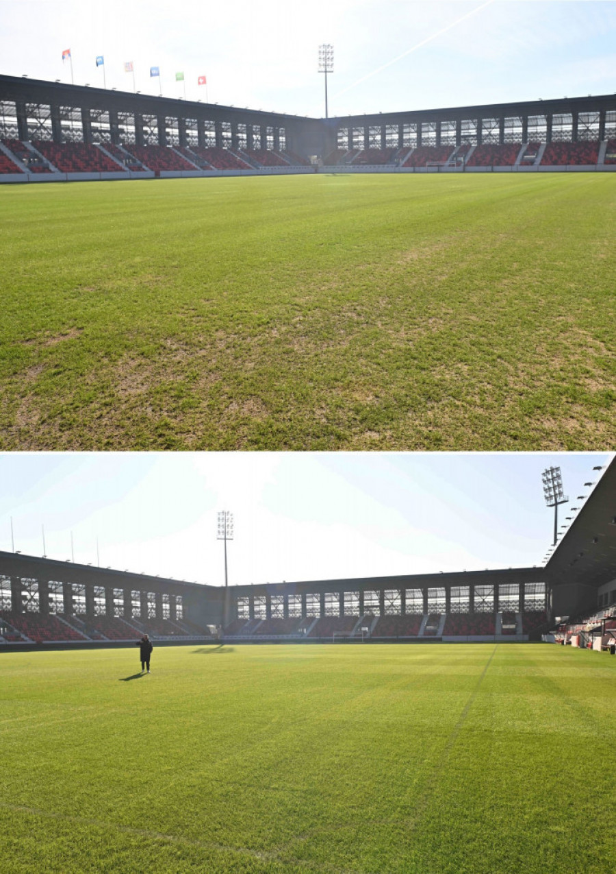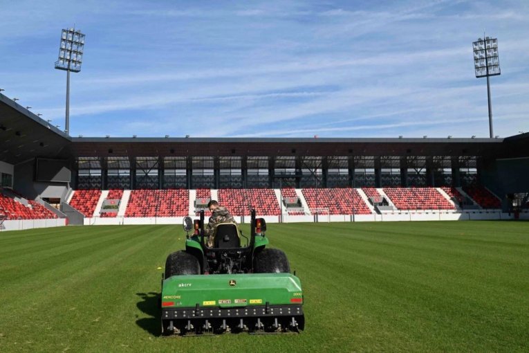 - S obzirom na završetak vegetacije, rekonstrukcija terena na stadionu „Dubočica” obavljena je u najbolje vreme. Na skali od jedan do deset kvaliteta, trenutna ocena je osam, uz opravdana očekivanja da će do ponedeljka stanje na prostoru za igru biti gotovo maksimalno. Istovremeno sa brigom oko stanja na terenu, obavljamo sve pripreme da ukupne funkcije na stadionu budu na visini očekivanja strogih delegata UEFA, a na ponos radnika koji u Leskovcu svakodnevno uređuju sve sadržaje kako bi igrači, gledaoci, novinari imali sve uslove za profesionalno obavljanje poslova - rekao je Pejčić.
