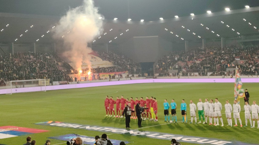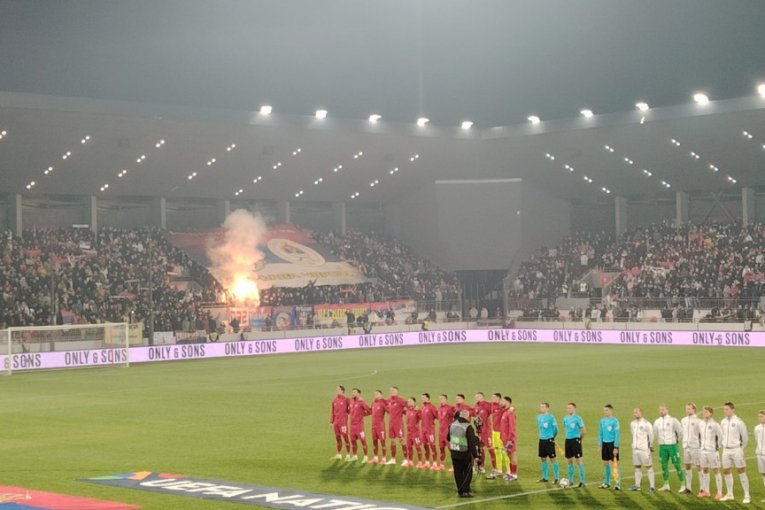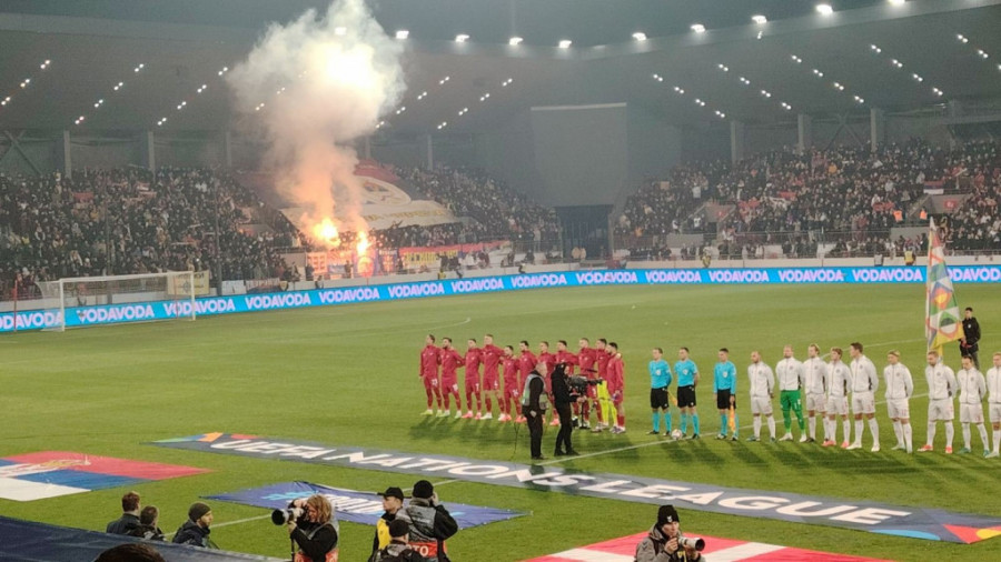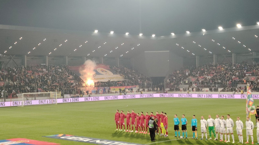 Pored toga, navijači su na nekoliko mesta zapalili baklje, pa je sve to doprinelo "podgrevanju" atmosfere pred veoma važan meč našeg nacionalnog tima.