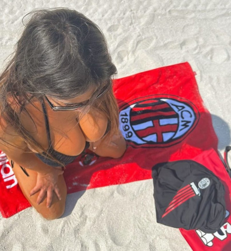 Atraktivna Italijanka redovno objavljuje fotografije na društvenoj mreži Istagram, a ne tako davno pozirala je na plaži u Majamiju sa brendiranim peškirom Fudbalskog kluba Milan.